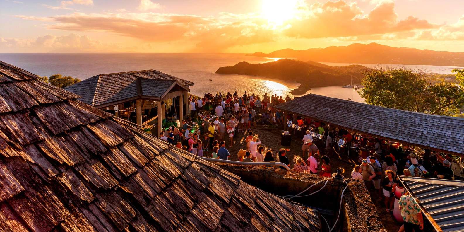 Shirley Heights is a restored military lookout and gun battery. The Lookout is a high point (about 490 ft.) that affords a superb view of English and Falmouth Harbours, the best view in Antigua. In this fantastic place, every Thursday and Sunday at sundown, you will have the opportunity to attend 2 typical Caribbean concerts: the first of calypso music and the second of mixed songs interpreted in a reggae key. At the Shirley Heights bar, you can taste the best cocktails in all of Antigua, including the Rum Punch. The photo you can take at sunset will be an indelible memory of your holiday and this day.